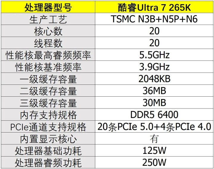 ▲酷睿Ultra 7 265K经管器取消了超线程时期,选拔20中枢、20线程配置。