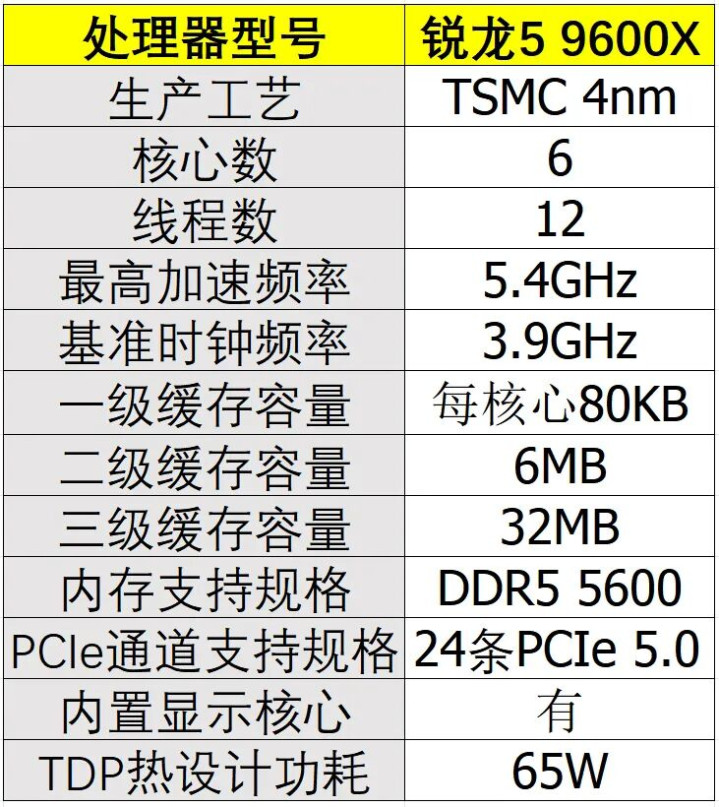 ▲AMD锐龙5 9600X选拔6中枢、12线程设想,领有高达5.4GHz的最高加快频率。