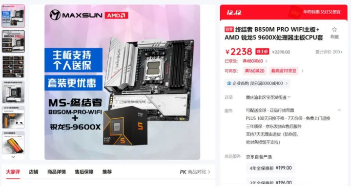 ▲要是还需要购买主板,那么取舍锐龙5 9600X板U套装将更合算。