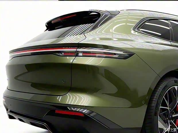 车身侧面,新车前后侧翼子板微微宽出车身,并搭配21英寸的五辐式半禁闭式轮圈,车身面板莫得经受较为复杂的线条联想,并使用半瞒哄式车门把手,进一步缩小风阻。车尾部分,新车D柱线条联想平滑优雅,比例谐和不突兀,绽放时配备车顶扰流板,尾灯组经受衔接式的联想,后包围经受与车身不同色联想,并搭配尾部扩散器讳饰面板。