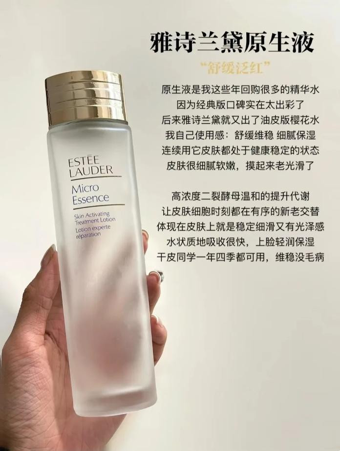 符合干皮,混干皮,受损肌肤使用。原生液是我这些年回购许多的精华水,因为经典版口碑实在太出彩了,自后雅诗兰黛就又出了油皮版樱花水,我我方使用感:安稳维稳玄虚保湿。