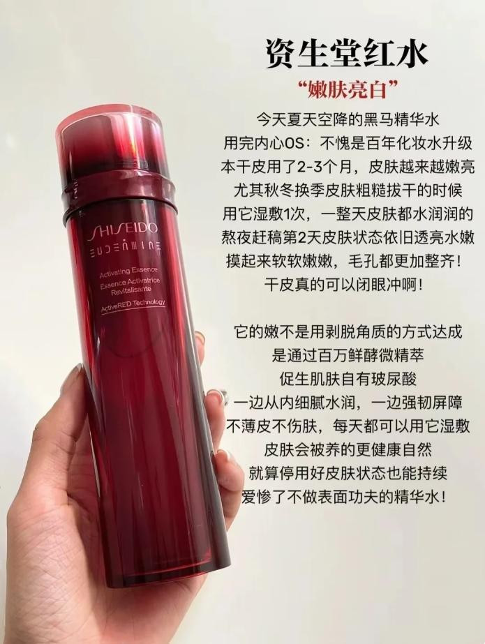 是贵妇精华水里罕有的清醒水润型,更符合油皮混油皮,从两年前发掘到它到目下夸两年了,看瓶子里是轻精油的质感,润泽有流动性,但惟有走动皮肤就坐窝化成清醒水感。
