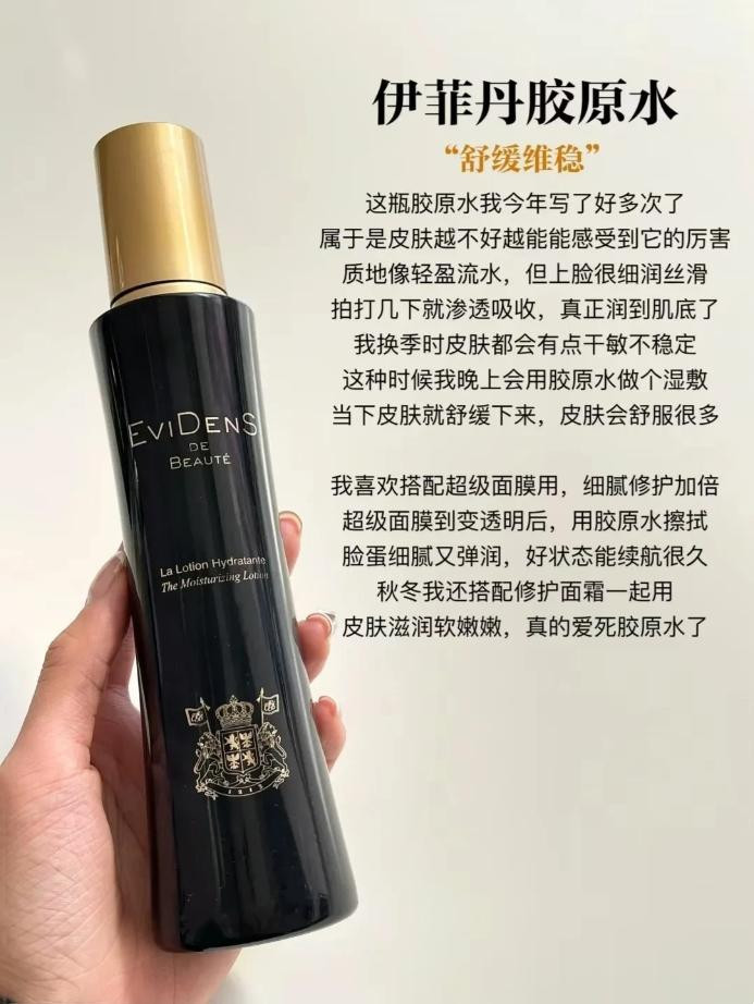 用完脸蛋子超玄虚,像开了柔光滤镜相似,换季期坚抓湿敷一段时间,脸上的毛孔果真小许多。伊菲丹三重胶原肌底柔肤水,属于贵妇级别的精华水,加入了法国峻岭泉水和焕肤净化因子,类似精华般质料。